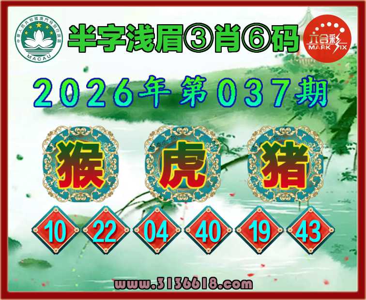 037期:【半字浅眉】 ♥️③肖⑥码♥️【猴虎】开:猪43准上榜高手