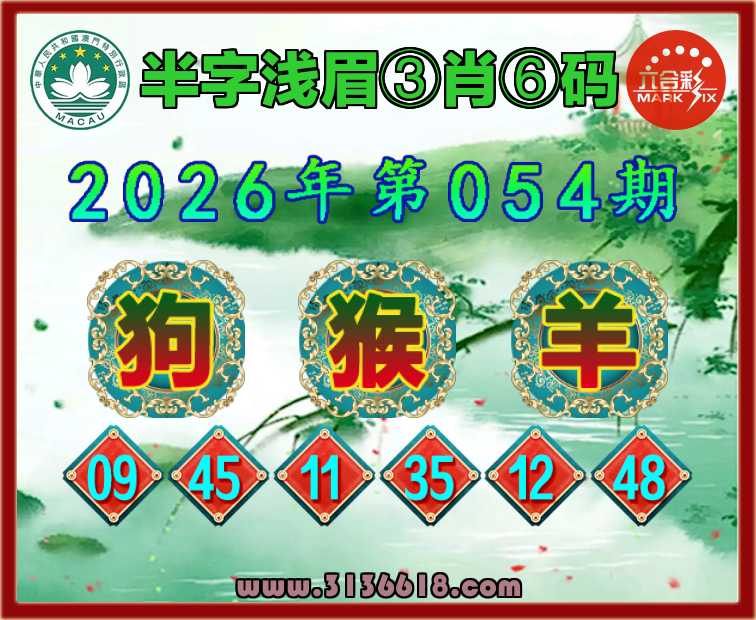 054期:【半字浅眉】 ♥️③肖⑥码♥️【狗猴】开:羊48准上榜高手