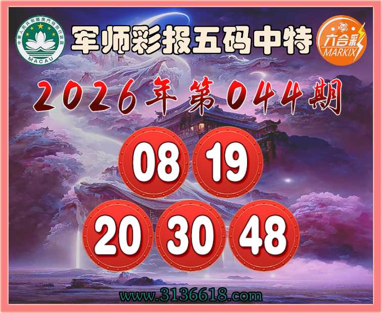 044期:『军师彩报』 🤘五码中特🤘【08.19.20.30.48】开:19准上榜高手