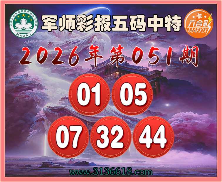 051期:『军师彩报』 🤘五码中特🤘【01.05.07.32.44】开:01准上榜高手